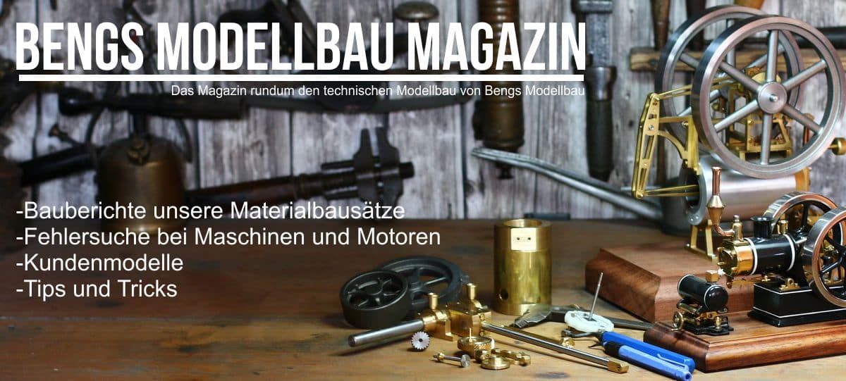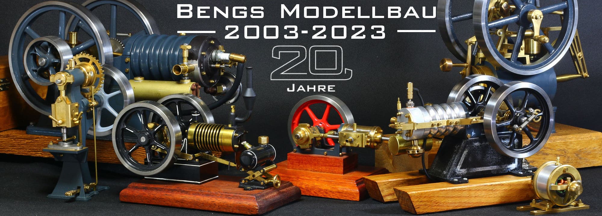 Die Firma Bengs Modellbau wurde 2003 gegründet. Begonnen haben wir ausschließlich als Lieferant von Teilen für den Dampfmodellbau. Nach einiger Zeit kam bereits der erste Materialbausatz für eine Dampfmaschine hinzu. Der Bereich der Bausätze entwickelte sich so gut, dass wir ab 2004 neben Dampfmaschinen auch ein erstes Flammenfresser Modell den Flammenfresser „Nick“ anbieten konnten. Der Flammenfresser „Nick“ erfreut sich bis heute bei Modellbauern in Deutschland und auch im Ausland über sehr große Beliebtheit. Aus diesem Anlass war ab Ende 2005 ein vergrößertes Modell dieses beliebten Flammenfressers erhältlich. Um das Angebot zum Thema Heißluftmotoren abzurunden folgte 2005 der erste Stirlingmotor. Mit dem Materialbausatz für den Stirlingmotor "Laura" können Sie sich selber einen kleinen Stirlingmotor bauen. Es folgten weiter Modellbau Materialsätze von Dampfmaschinen, Stirlingmotoren und Flammenfressern. Besonders beliebt ist das Modell der Dampfmaschine "Donatus" es ist eine stehende Bock-Dampfmaschine mit Fliehkraftregler. Um auch den Anfängern den technischen Modellbau näher zu bringen, haben wir den Materialbausatz für die Dampfmaschine “Danni“ veröffentlicht. Eine kleine liegende Dampfmaschine mit Schiebersteuerung. Zum zehnjährigen Jubiläum von Bengs Modellbau haben wir einen liegenden Stirlingmotor als Materialbausatz veröffentlicht der Stirlingmotor Laura ist ein sehr kräftiger Modellbau Stirlingmotor der mit einer Tankfüllung 10 Stunden laufen kann.