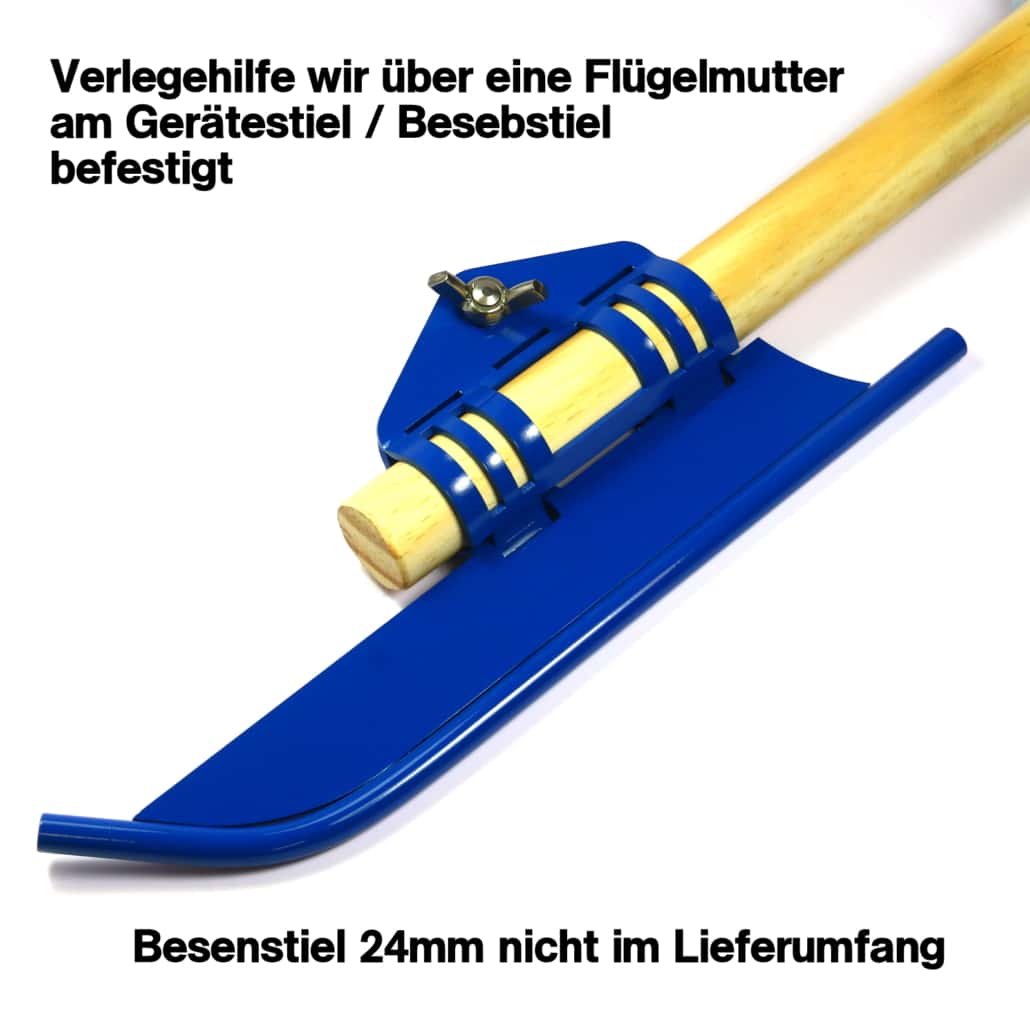 The EasyMole laying aid comes with a sturdy steel telescopic handle that can be extended to a length of 1.5 m. A round wooden rod serves as a holder for the cable drum and is attached to the device handle with a stainless steel clamp. The drum holder can be mounted for right- and left-handed users and offers additional support when holding, while the cable drum can be easily unrolled. Clamp and screws are included. Detailed instructions are also included.