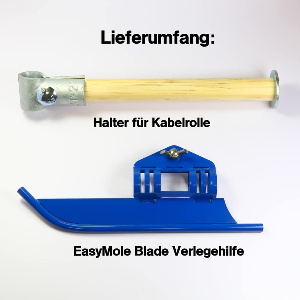 The EasyMole laying aid is made in Germany and consists of robust 1.5 mm sheet steel and galvanized steel pipe. All parts are welded and then painted, ensuring durability and stability. This tool is suitable for both private and commercial use and is a cost-effective alternative to buying or renting a cable laying machine.