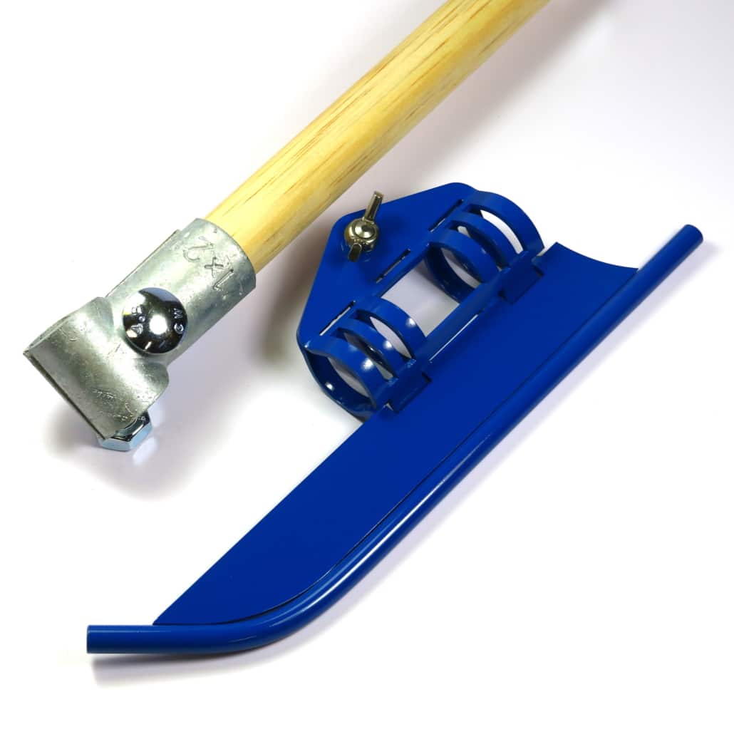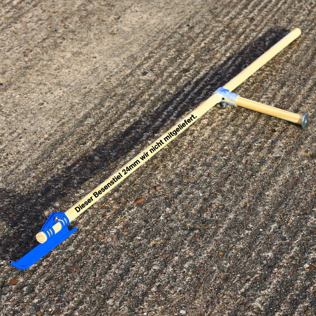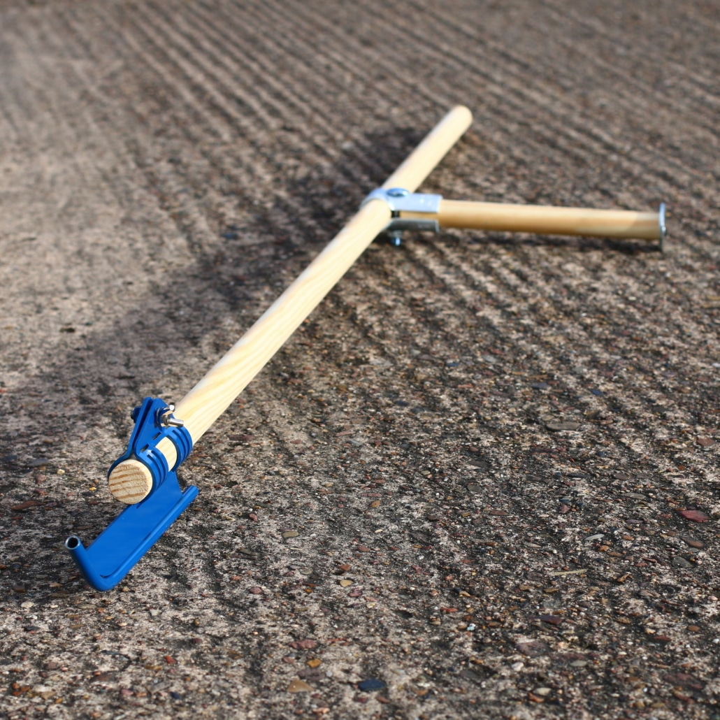 Our laying aid for boundary cables is firmly connected to a sturdy steel telescopic tool handle. The handle can be extended to a length of 1.5m. A round wooden rod is used to hold the cable drum and is attached to the handle with a stainless steel clamp. The drum holder can be mounted for right- and left-handed users. The holder provides additional support when holding and the cable drum can unroll easily. Clamp and screws are included.