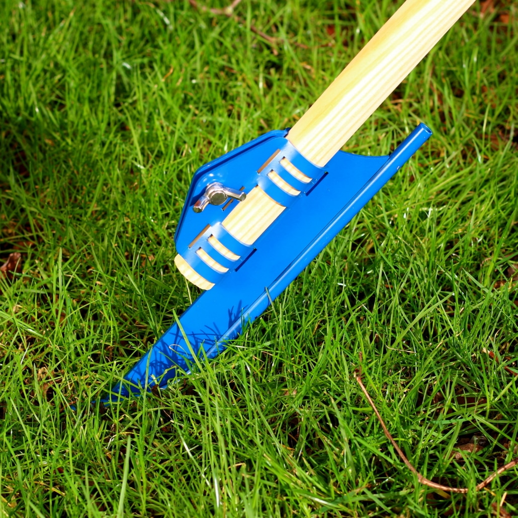 With our laying aid, the boundary wire is inserted directly into the prepared slot in the lawn through a steel pipe! You don't need additional plastic nails and you don't have to bend over or work on your knees. You also don't need a second person to insert the cable. You simply insert the cable into your lawn using the laying aid and then close the slot. The easy handling of the EasyMole saves you a lot of time and effort and your robotic lawnmower can start working straight away.