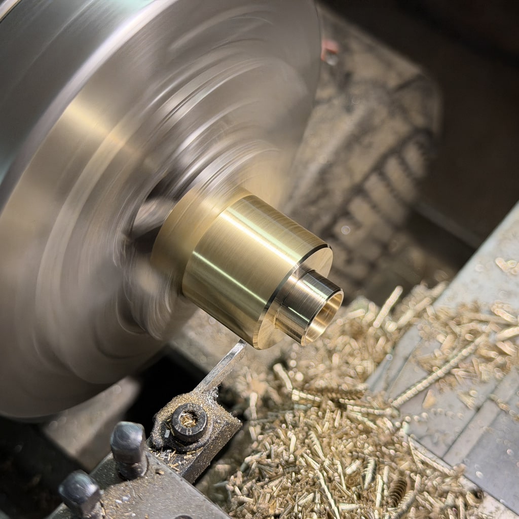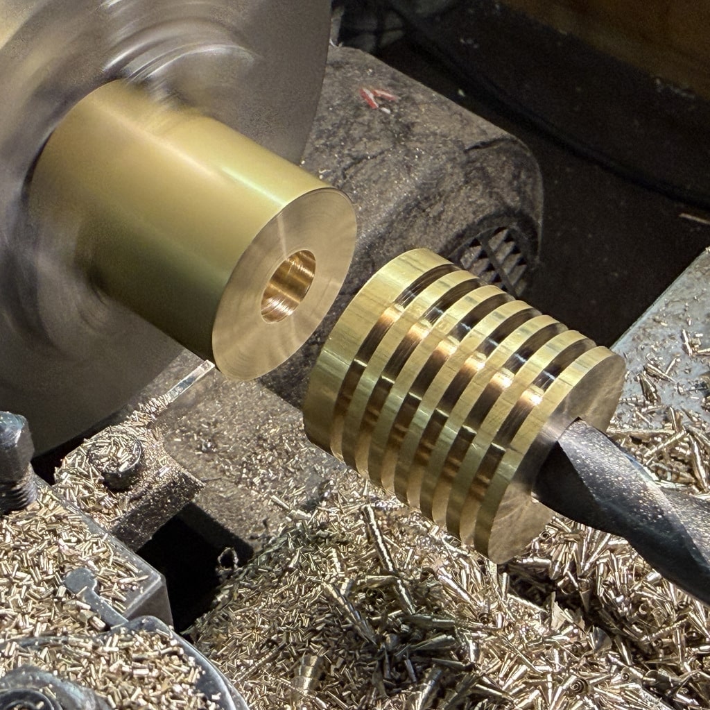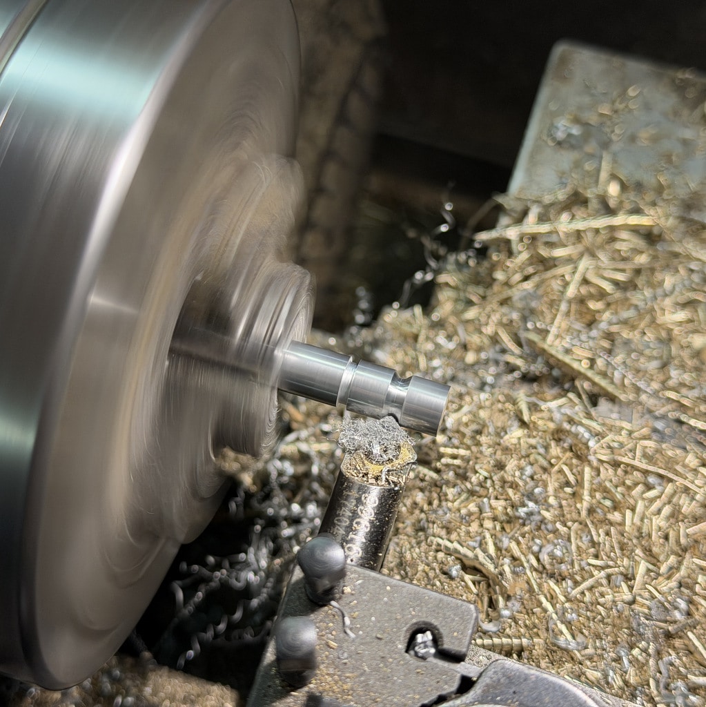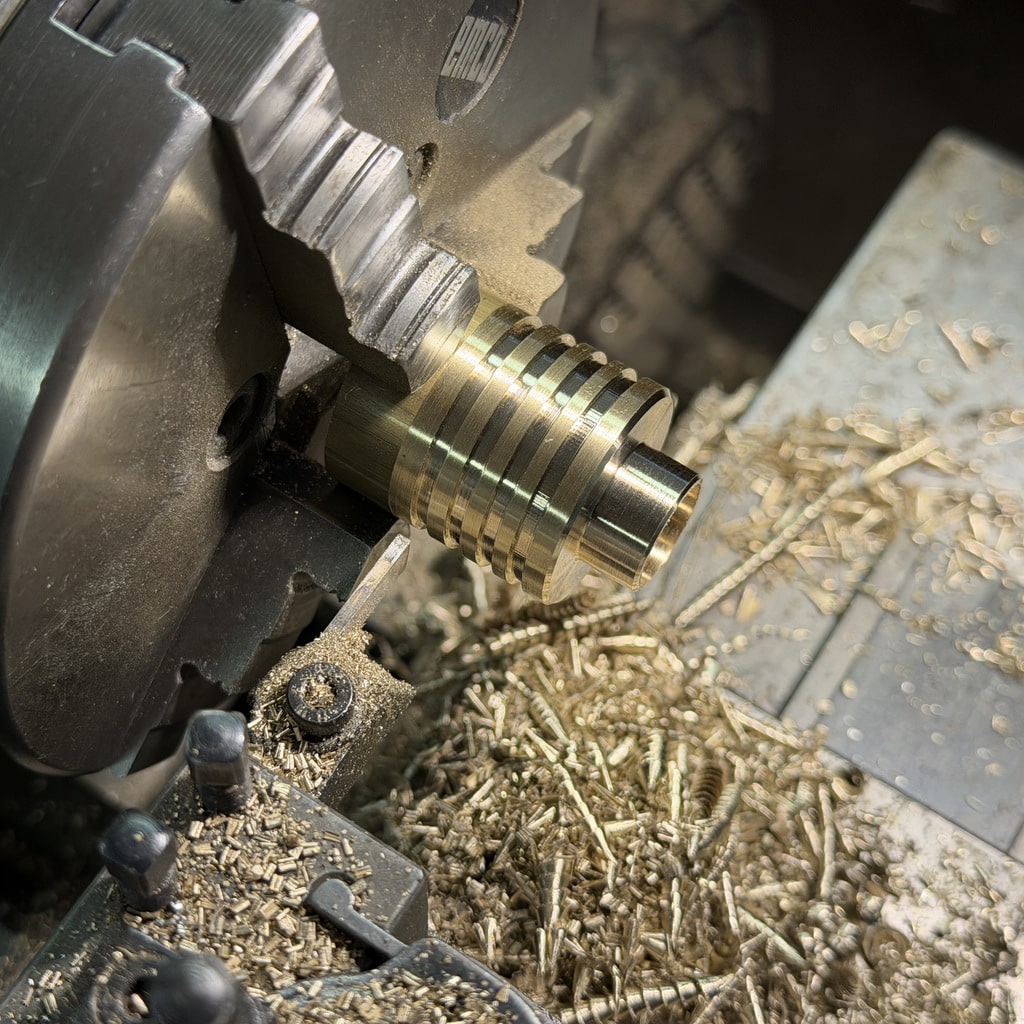 Ich beginne mit der Bohrung für den Arbeitskolben. Nachdem ich die Bohrung mit einem 10 mm Bohrer vorgebohrt habe drehe ich die Bohrung auf 12mm aus. Mit den Innendrehmeißeln geht das ganz hervorragend, wichtig ist hier nur die Oberfläche das genaue Maß ist hier nicht entscheidend. Wir können den Kolben an die Bohrung anpassen. Alternativ könnte man hier auch eine Reibahle 12H7 verwenden.